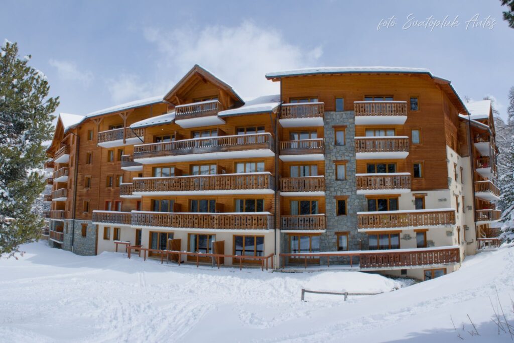 Ubytování v Residenci L´Albane, která je přímo na sjezdovce. Residence je tvořena 2 samostatnými sousedícími budovami; v hlavní budově se nachází recepce, v budově vedlejší pak vyhřívaný venkovní bazén 15 x 8 m; apartmány jsou nabízeny bez rozlišení, tedy bez konkretizace budovy, ve které jsou umístěny. Poskytované služby – recepce, úschovna lyží, výtah, pračka, ranní donáška čerstvého pečiva, wi-fi připojení k internetu. Apartmány pro 4 osoby – 28 m2 – 1 ložnice s manželskou postelí, obývací pokoj s kuchyňským koutem a 2 gauči, sociální zařízení se sprchou či vanou, balkon či terasa, TV sat., vybavená kuchyňka. Volný vstup do bazénu v otevíracích hodinách.